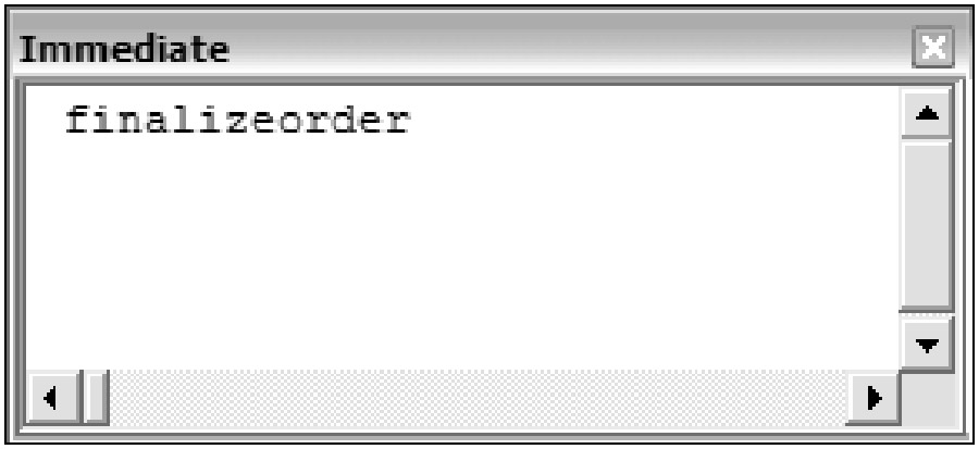 Run the FinalizeOrder procedure from the Immediate Window as shown in Figure 2-10.