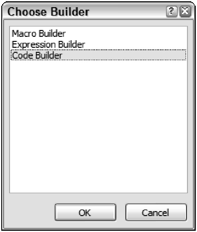 Select the Code Builder option from the list, as shown in the previous figure, and click the OK button.