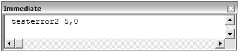 Call the TestError2 procedure from the Immediate Window with the values shown in Figure 2-43.