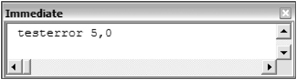 Run the TestError procedure from the Immediate Window, as shown in Figure 2-41.