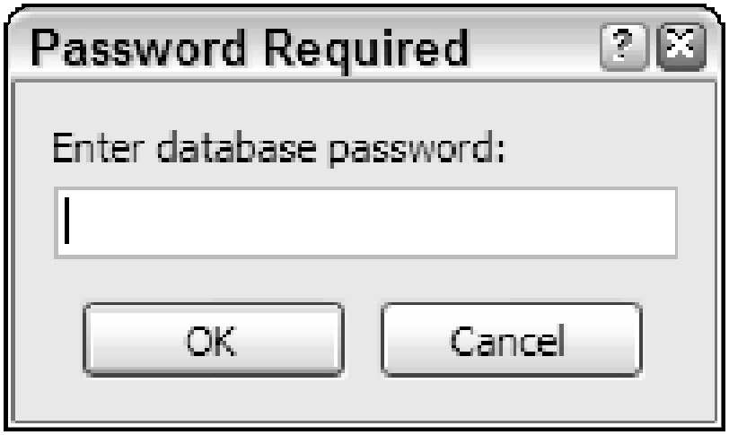 After a database password has been assigned, whenever any user tries to open the database, a dialog similar to the one shown in Figure 12-10 is displayed. Before the database can be opened, the user must specify the correct database password.