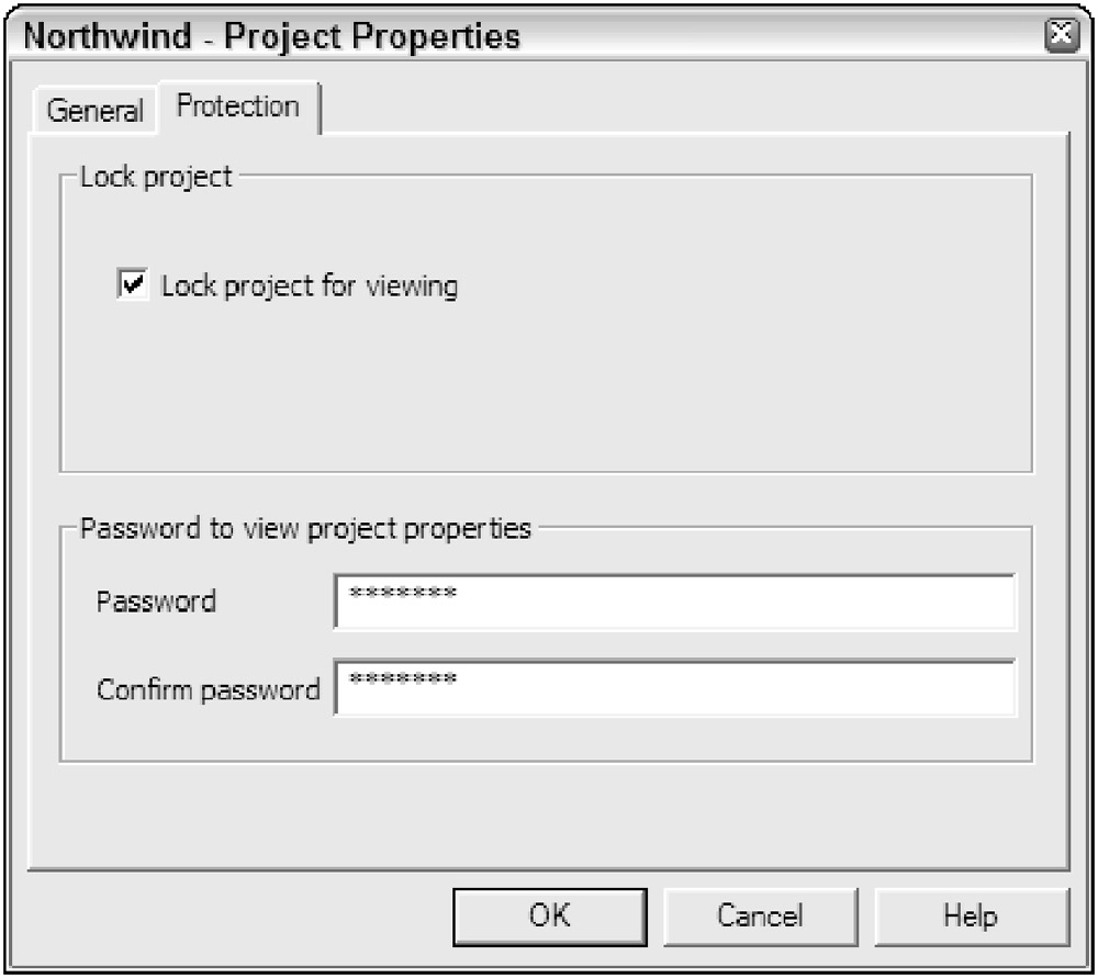 Adding a password to the database as described in the prior section does not keep the user from seeing your source code. Since Access 2000, you have to secure the VBA source code separately by locking the project from viewing and providing a password. To add a password for the VBA code, open the Visual Basic Editor. Then, select Tools