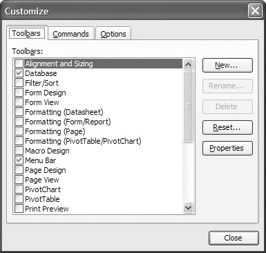 You can see a complete list of all the toolbars available by selecting View | Toolbars | Customize, as seen in Figure 4-2.