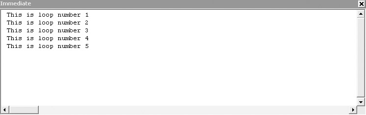 If you run this subroutine in the Immediate window, you should see the result shown here: