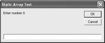 intMyScores(i) = InputBox("Enter number " & i, "Static Array Test")