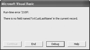 If you had reversed these two lines and opened the form, you would have received the following error message: