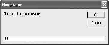 intNumerator = InputBox("Please enter a numerator", "Numerator")