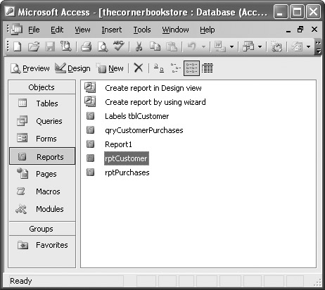 In this example I used MyReport as the name. Figure 13-21 shows that it was added as a report object to the database.