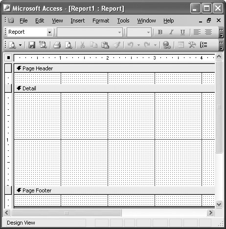 We now need to add the controls to the report. We will add the column headings to the page header and the bound controls to the Detail section. While using ADO, the Detail section is the default section.