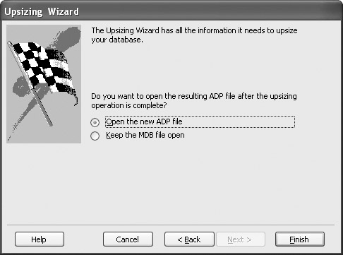 Finally, you have an option to upsize only the table structures and to leave the data behind. You would then need to import the data at some future date.
