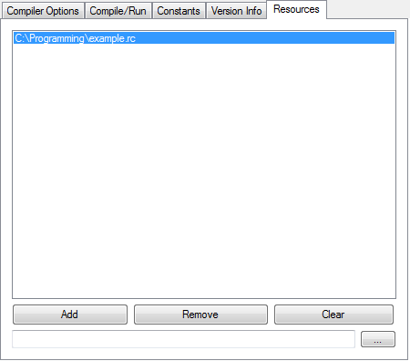 This is a Windows only feature. Here you can include as many Resource scripts (*.rc files) as you want. They will be compiled and included with the executable. You can use any resource editor (for example the PellesC IDE) to create such scripts.