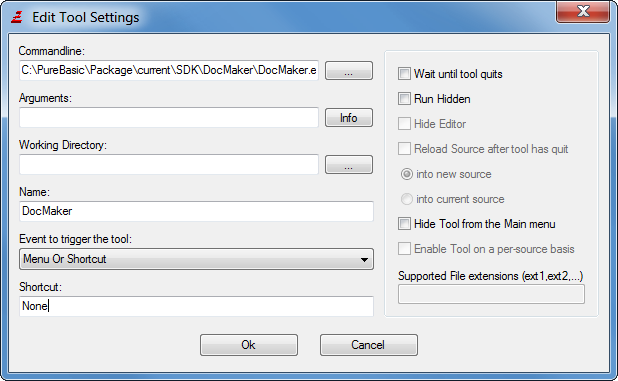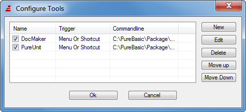 The PureBasic IDE allows you to configure external programs to be called directly from the IDE, through the Menu, Shortcuts, the Toolbar, or on special "triggers". The use of this is to make any other program you use while programming easily accessible.