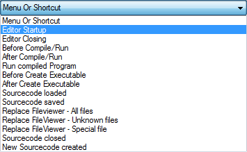 A common use for this trigger is for example to configure a program like Acrobat Reader to handle the "pdf" extension, which enables you to easily open pdf files from the Explorer, the File Viewer, or by double-clicking on an Includebinary statement in the source.
