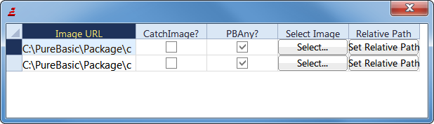 Display all the images currently used by the form. The image and its path can be changed easily here.