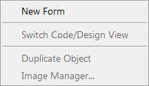 The PureBasic IDE has a very powerful integrated form designer, which allows to design easily windows and arrange gadgets on them. It supports almost all native PureBasic gadgets, menu and even status bar. A form file is a regular PureBasic file, so it can be easily modified without even open the form designer. The code parser isn't the same used by the compiler and therefore doesn't support all features, so when doing manual changes to a form file, it has to remain basic.Contents of the "Form" menu: